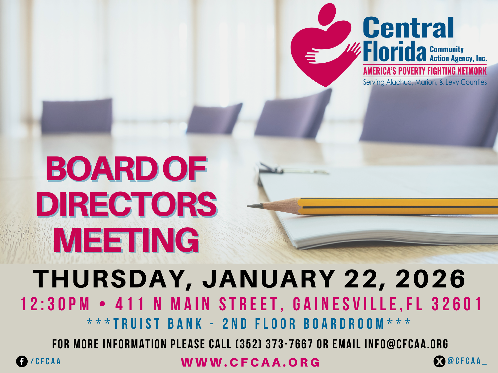 Central Florida Community Action Agency (CFCAA) is a private, nonprofit, community-based organization whose purpose is to reduce poverty and help low-income individuals and families become self-sufficient in Alachua, Levy and Marion Counties. CFCAA is committed to helping people strengthen their lives through community partnerships. The Agency serves Alachua, Levy and Marion Counties and has offices in each county.